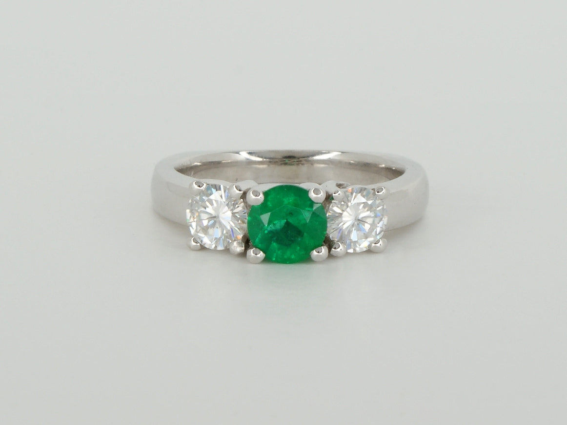 14K White Gold Emerald & Moissanite Trinity Ring